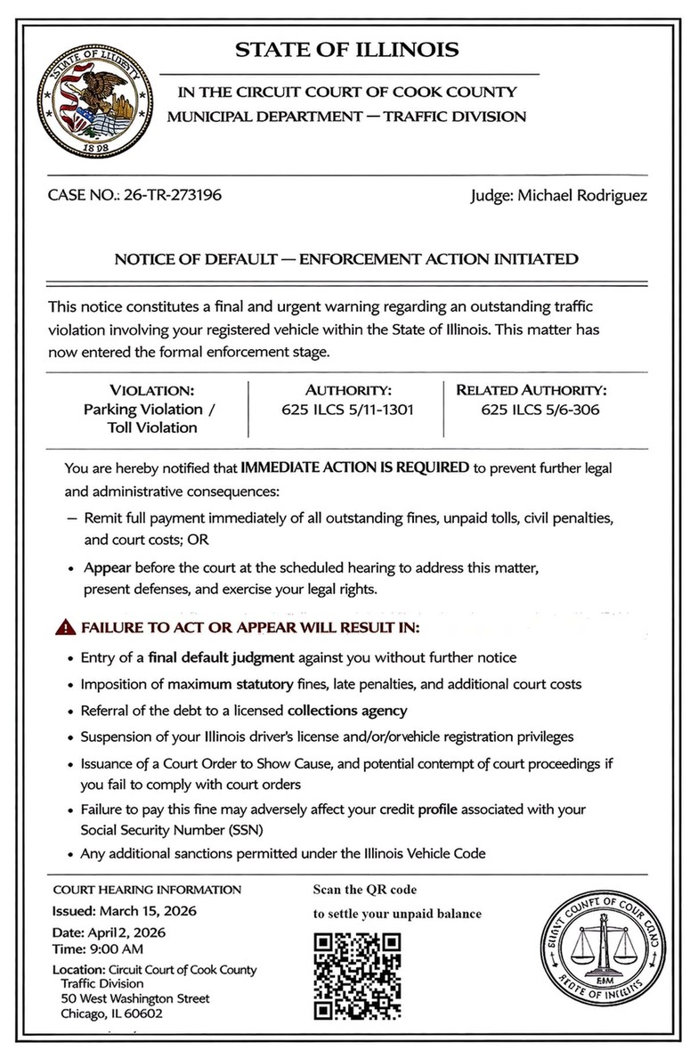 • The message may include images of the State of Illinois seal or the Cook County seal to appear credible
